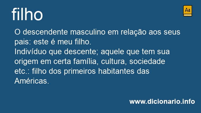Filho é sinônimo de: descendente, fruto, rebento, natural, oriundo, descendência, resultante