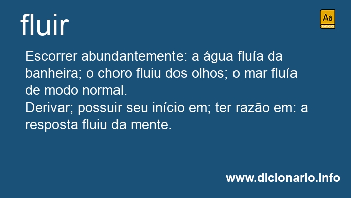 Escorrer abundantemente: a água fluía da banheira; o choro fluiu dos olhos; o mar fluía de modo normal.
