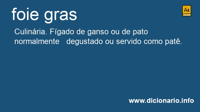locução substantiva Culinária. Fígado de ganso ou de pato normalmente degustado ou servido como patê.