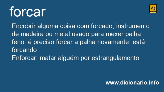 Encobrir alguma coisa com forcado, instrumento de madeira ou metal usado para mexer palha, feno: é preciso forcar a palha novamente; está forcando.