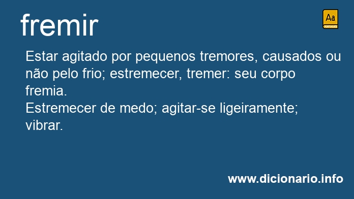 Estar agitado por pequenos tremores, causados ou não pelo frio; estremecer, tremer: seu corpo fremia.