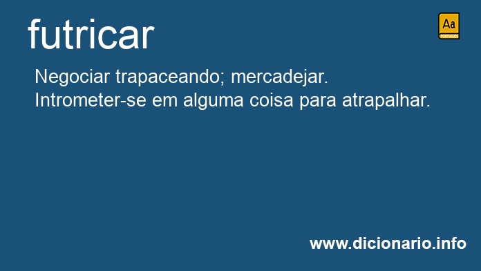 Futricar é sinônimo de: mercadejar, trafegar, traficar