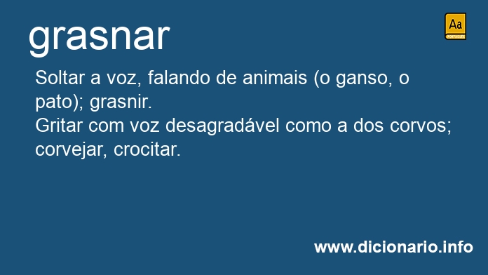 Dizer algo como se estivesse grasnando, com voz de corvo: grasnou absurdos aos pedestres; passava a vida a grasnar.