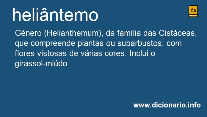 substantivo masculino [Botânica] Gênero (Helianthemum), da família das Cistáceas, que compreende plantas ou subarbustos, com flores vistosas de várias cores. Inclui o girassol-miúdo.