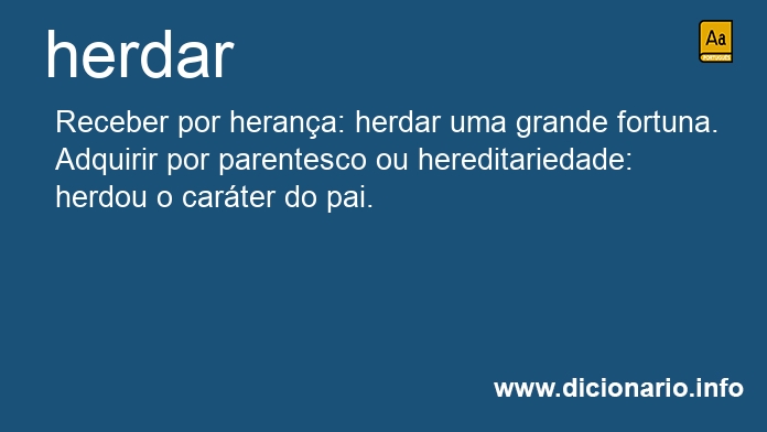 Adquirir por parentesco ou hereditariedade: herdou o caráter do pai.