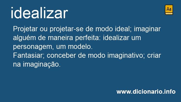 Projetar ou projetar-se de modo ideal; imaginar alguém de maneira perfeita: idealizar um personagem, um modelo.