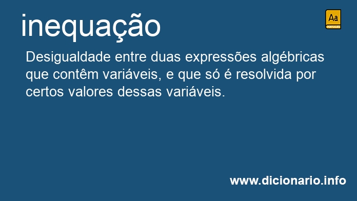 substantivo feminino Desigualdade entre duas expressões algébricas que contêm variáveis, e que só é resolvida por certos valores dessas variáveis.