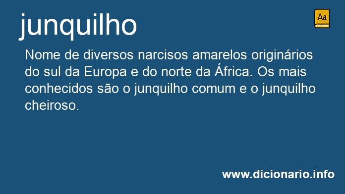 substantivo masculino Nome de diversos narcisos amarelos originários do sul da Europa e do norte da África. Os mais conhecidos são o junquilho comum e o junquilho cheiroso.