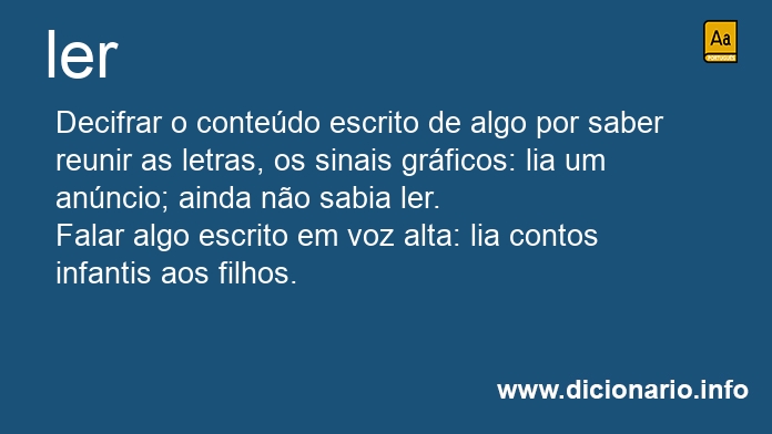 Decifrar o conteúdo escrito de algo por saber reunir as letras, os sinais gráficos: lia um anúncio; ainda não sabia ler.
