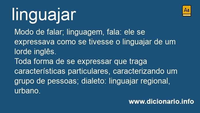 [Linguística] Toda forma de se expressar que traga características particulares, caracterizando um grupo de pessoas; dialeto: linguajar regional, urbano.