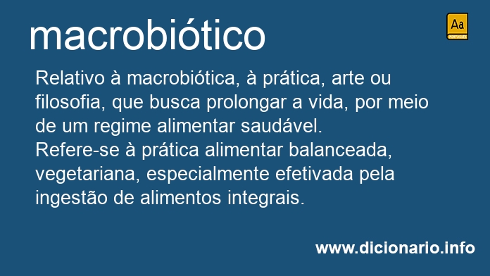 Etimologia (origem da palavra macrobiótico). De macrobiótica, do francês macrobiotique + ico.