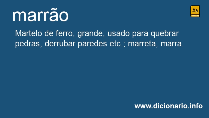 Martelo de ferro, grande, usado para quebrar pedras, derrubar paredes etc.; marreta, marra.