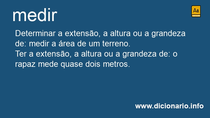 Determinar a extensão, a altura ou a grandeza de: medir a área de um terreno.