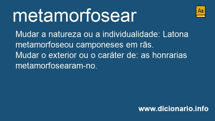Metamorfoseavas vem do verbo metamorfosear. O mesmo que: convertias, transmutavas, transformavas, transmudavas.