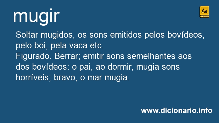 Soltar mugidos, os sons emitidos pelos bovídeos, pelo boi, pela vaca etc.