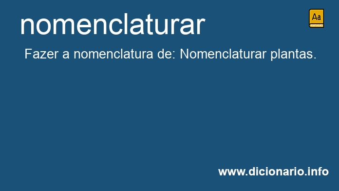 Etimologia (origem da palavra nomenclaturar). Nomenclatura + ar.