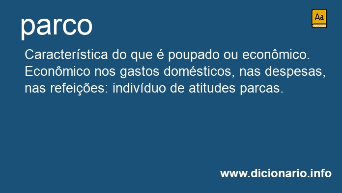 Parco é sinônimo de: escasso, diminuto, inaudito, insuficiente, raro, vasqueiro, frugal, sóbrio