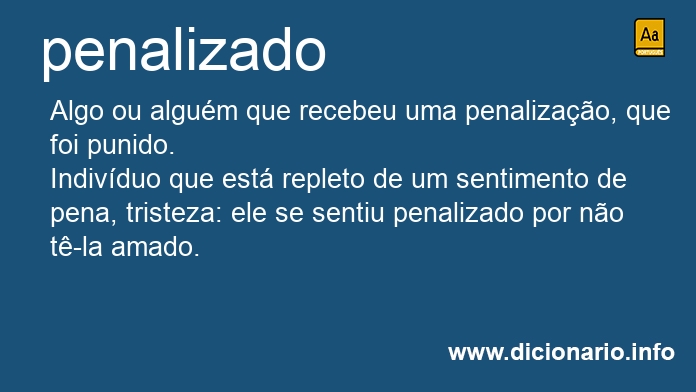 Indivíduo que está repleto de um sentimento de pena, tristeza: ele se sentiu penalizado por não tê-la amado.
