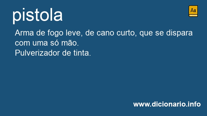 substantivo feminino Arma de fogo leve, de cano curto, que se dispara com uma só mão.