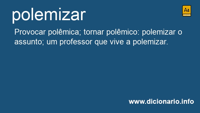 Etimologia (origem da palavra polemizar). Polêmic(o) + izar.