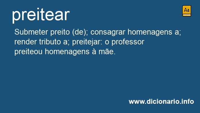 Submeter preito (de); consagrar homenagens a; render tributo a; preitejar: o professor preiteou homenagens à mãe.