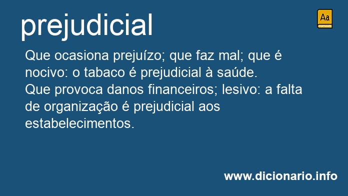 Que ocasiona prejuízo; que faz mal; que é nocivo: o tabaco é prejudicial à saúde.