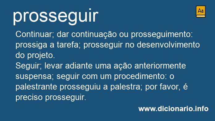 Continuar; dar continuação ou prosseguimento: prossiga a tarefa; prosseguir no desenvolvimento do projeto.