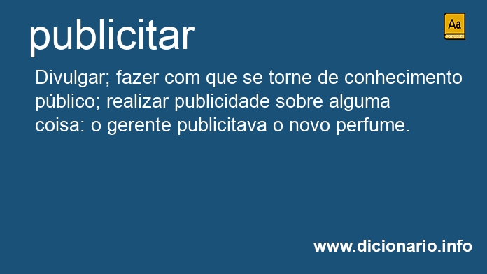 Divulgar; fazer com que se torne de conhecimento público; realizar publicidade sobre alguma coisa: o gerente publicitava o novo perfume.