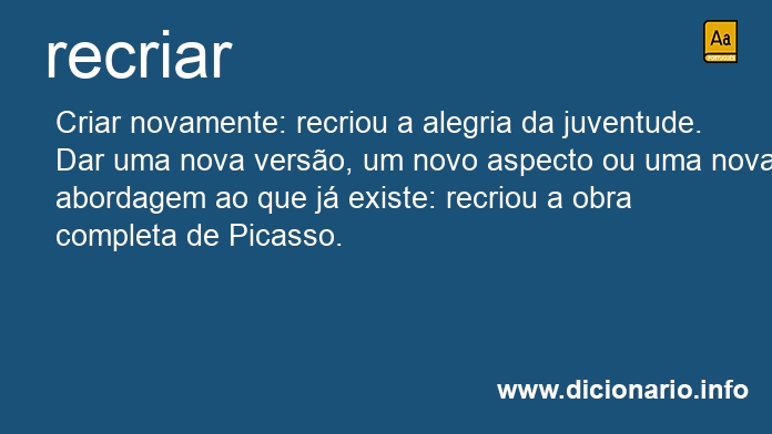 [Por Extensão] Dar uma nova versão, um novo aspecto ou uma nova abordagem ao que já existe: recriou a obra completa de Picasso.