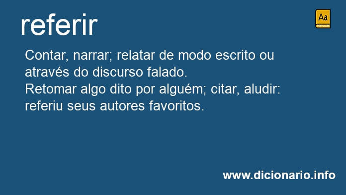 Retomar algo dito por alguém; citar, aludir: referiu seus autores favoritos.