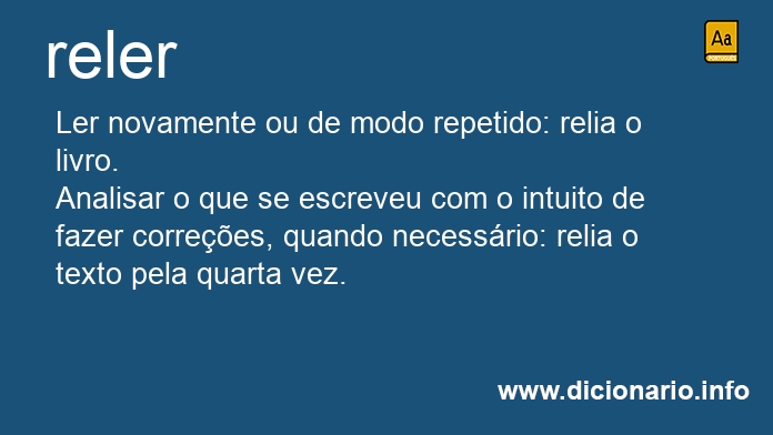 Ler novamente ou de modo repetido: relia o livro.