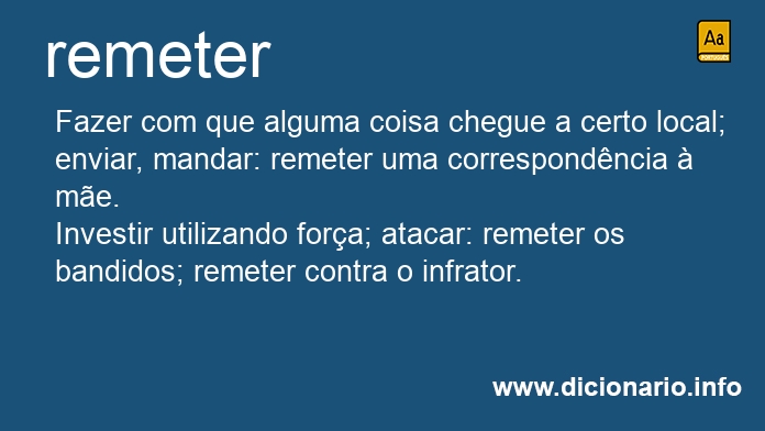 Fazer com que alguma coisa chegue a certo local; enviar, mandar: remeter uma correspondência à mãe.