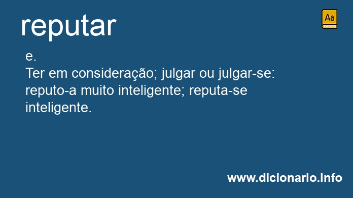 Ter em consideração; julgar ou julgar-se: reputo-a muito inteligente; reputa-se inteligente.
