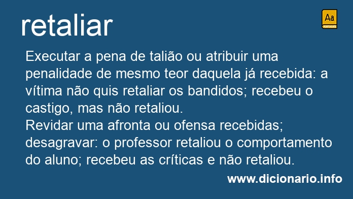 Etimologia (origem da palavra retaliar). Do latim retaliare.