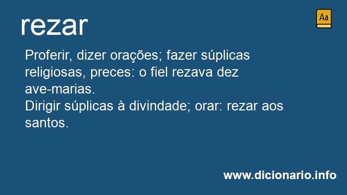 Proferir, dizer orações; fazer súplicas religiosas, preces: o fiel rezava dez ave-marias.