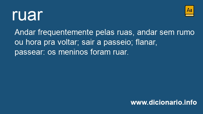 Andar frequentemente pelas ruas, andar sem rumo ou hora pra voltar; sair a passeio; flanar, passear: os meninos foram ruar.