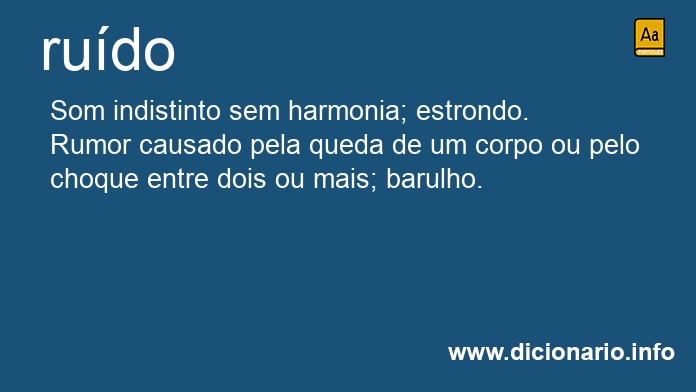 Ruído é sinônimo de: estrondo, gritaria, tumulto, barulho, estrépito, rumor, som, zumbido