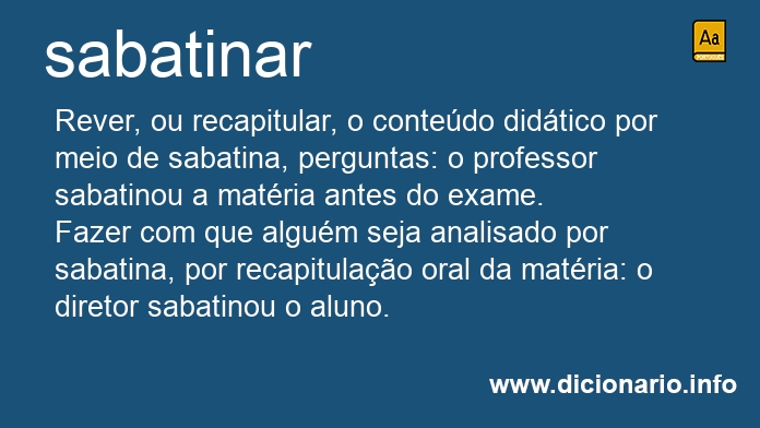 Fazer com que alguém seja analisado por sabatina, por recapitulação oral da matéria: o diretor sabatinou o aluno.