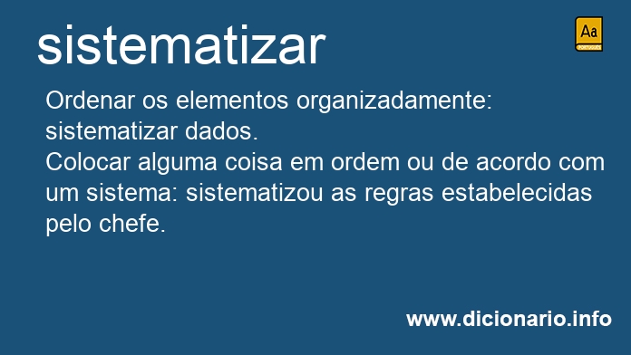 Colocar alguma coisa em ordem ou de acordo com um sistema: sistematizou as regras estabelecidas pelo chefe.