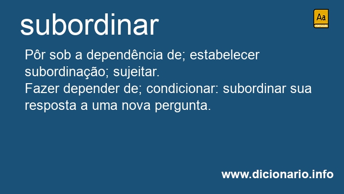 [Figurado] Fazer depender de; condicionar: subordinar sua resposta a uma nova pergunta.