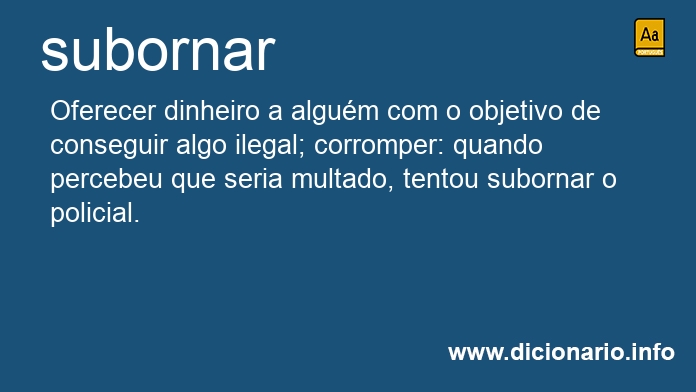 Oferecer dinheiro a alguém com o objetivo de conseguir algo ilegal; corromper: quando percebeu que seria multado, tentou subornar o policial.