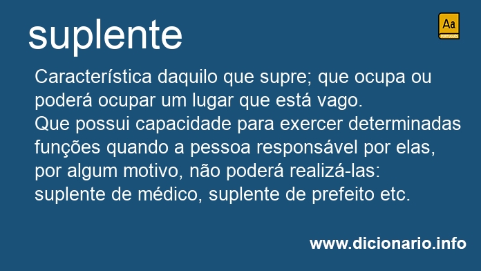 Que possui capacidade para exercer determinadas funções quando a pessoa responsável por elas, por algum motivo, não poderá realizá-las: suplente de médico, suplente de prefeito etc.