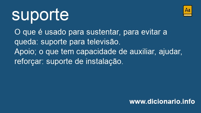 Apoio; o que tem capacidade de auxiliar, ajudar, reforçar: suporte de instalação.