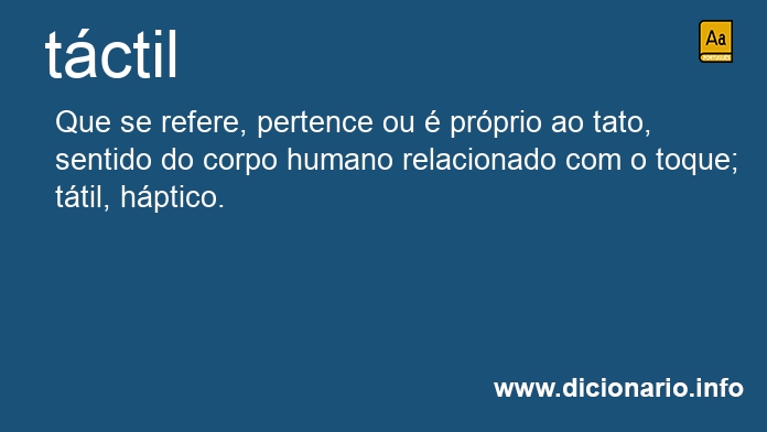 Etimologia (origem da palavra táctil). Do latim tactu 'sensível ao tato' + il.