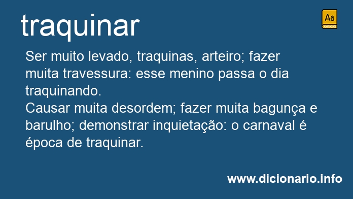 Causar muita desordem; fazer muita bagunça e barulho; demonstrar inquietação: o carnaval é época de traquinar.