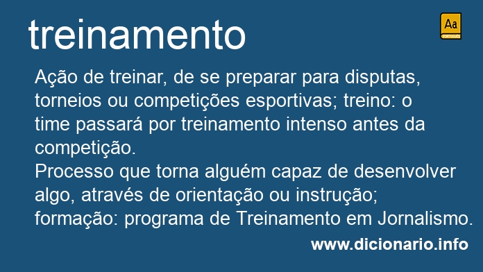 Treinamento é sinônimo de: treinagem, treino, formação, habilidade
