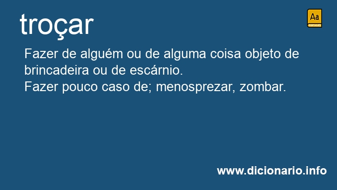 Troçarei vem do verbo troçar. O mesmo que: empulharei, achincalharei, ridicularizarei, zombarei, mofarei, caçoarei, zombetearei, escarnecerei, motejarei.