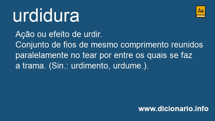 Urdidura é sinônimo de: maquinação, contextura, enredo, intriga, trama, teia