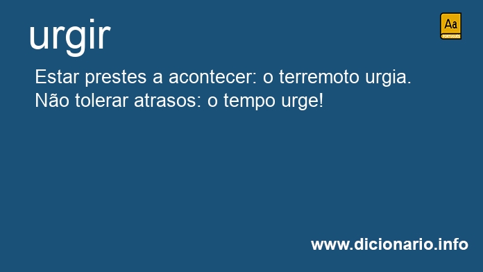 Necessitar com urgência; não ser dispensável; ser inadiável: urgia com o governo verbas para a educação; urgia ao filho buscar dinheiro.