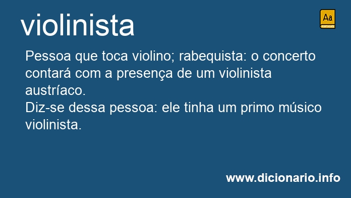 substantivo masculino e feminino Pessoa que toca violino; rabequista: o concerto contará com a presença de um violinista austríaco.